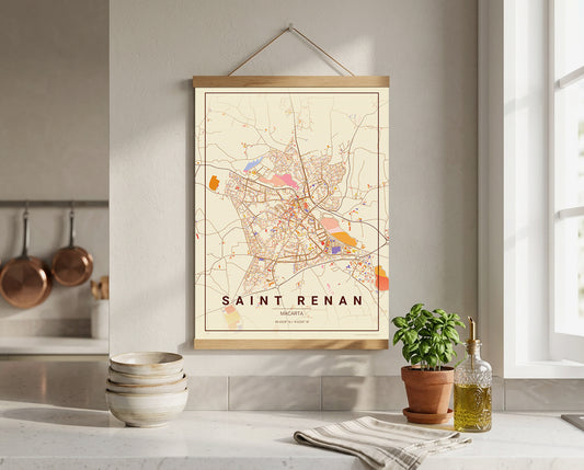 Affiche Carte de Saint-Renan – Poster carte décorative réversible 30x40 | Bretagne