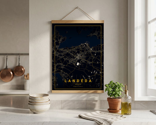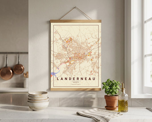 Affiche Carte de Landerneau – Poster carte décorative réversible 30x40 | Bretagne