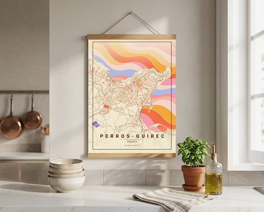 Affiche Carte de Perros-Guirec – Poster carte décorative réversible 30x40 | Bretagne