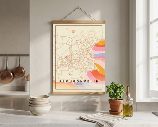Affiche Carte de Plouguin – Poster carte décorative réversible 30x40 | Bretagne