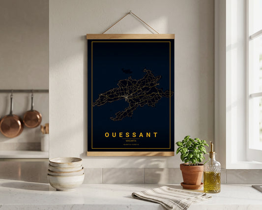 Affiche Carte de l’Île d’Ouessant – Poster carte décorative réversible 30x40 | Bretagne