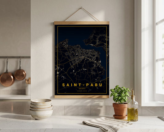 Affiche Carte de Saint-Pabu – Poster carte décorative réversible 30x40 | Bretagne