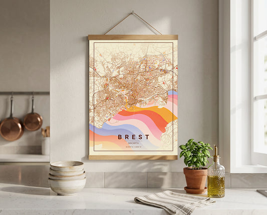 Affiche Carte de Brest – Poster carte décorative réversible 30x40 | Bretagne