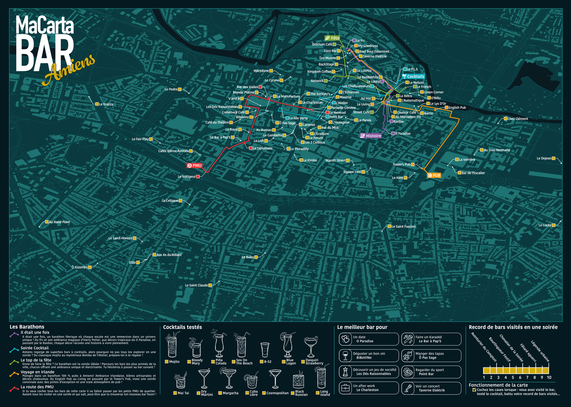 Envie de découvrir tous les recoins de la vie nocturne Amiénoise ? La Carte à Bars de Amiens est le compagnon idéal pour explorer, s’amuser, et créer des souvenirs mémorables. Que vous soyez un nouvel arrivant curieux, un groupe d'amis prêts à relever des défis, ou un passionné qui aime suivre des aventures, ce poster interactif est fait pour vous !