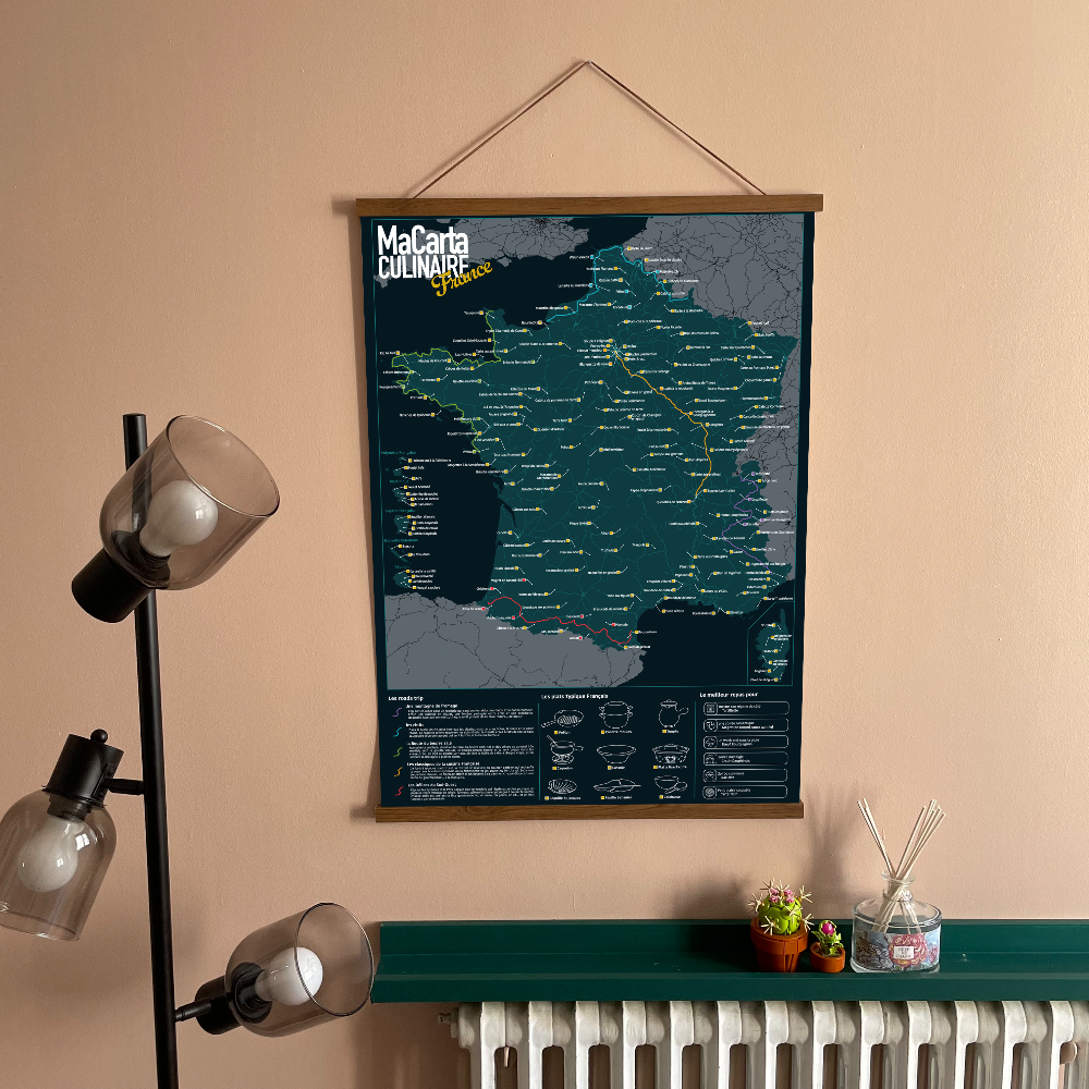Au format 50×70 cm, cette affiche devient une décoration murale originale pour la cuisine, le salon ou une salle à manger. C’est aussi une idée cadeau parfaite pour un amateur de gastronomie, un passionné de cuisine française ou un voyageur gourmand.